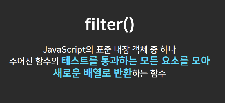 배열에서 특정 조건에 해당하는 요소만 새로운 배열로 만들어주는 filter 함수를 배우다.