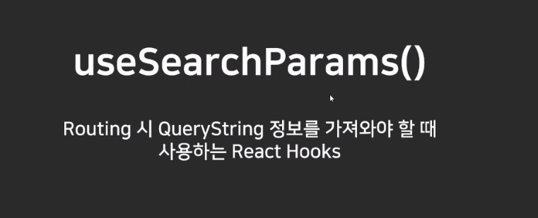 useSearchParams는 URL 뒤에 카테고리로 여러 개가 붙여지면서 URL을 구별할 때 사용한다. QueryString 형태로 정보를 가져온다. state처럼 대괄호를 사용해서 useSearchParams를 query에 저장한다. URL에 맨 뒤에 cate라는 이름의 값이 shirt로 설정했기 때문에 query.get(이름)으로 접근하면 URL의 등호 다음 값이 나온다.
