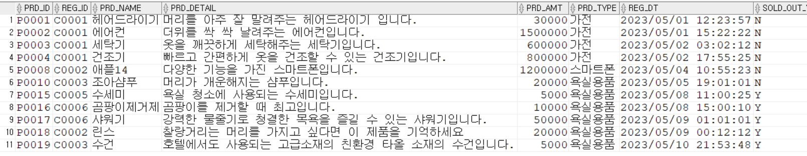 WHERE PRD_TYPE IN ('가전', '욕실용품', '스마트폰');