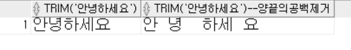 TRIM 함수안에 있는 문자열의 양 끝의 공백만 제거해 준다. 문장 내의 공백은 제거하지 않는다.